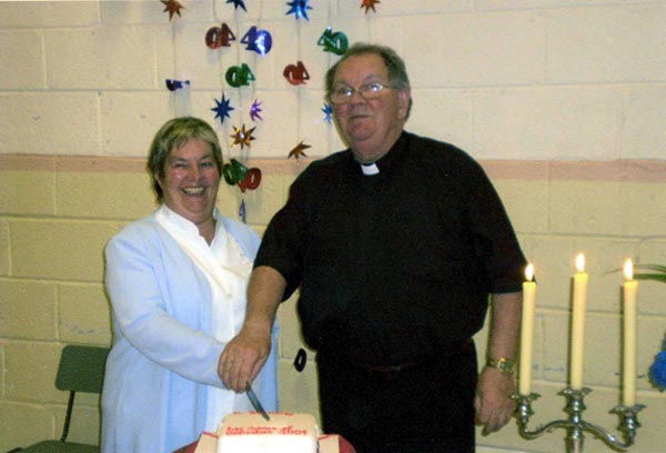 Fr. Mailey with a commemoration Mirror. |